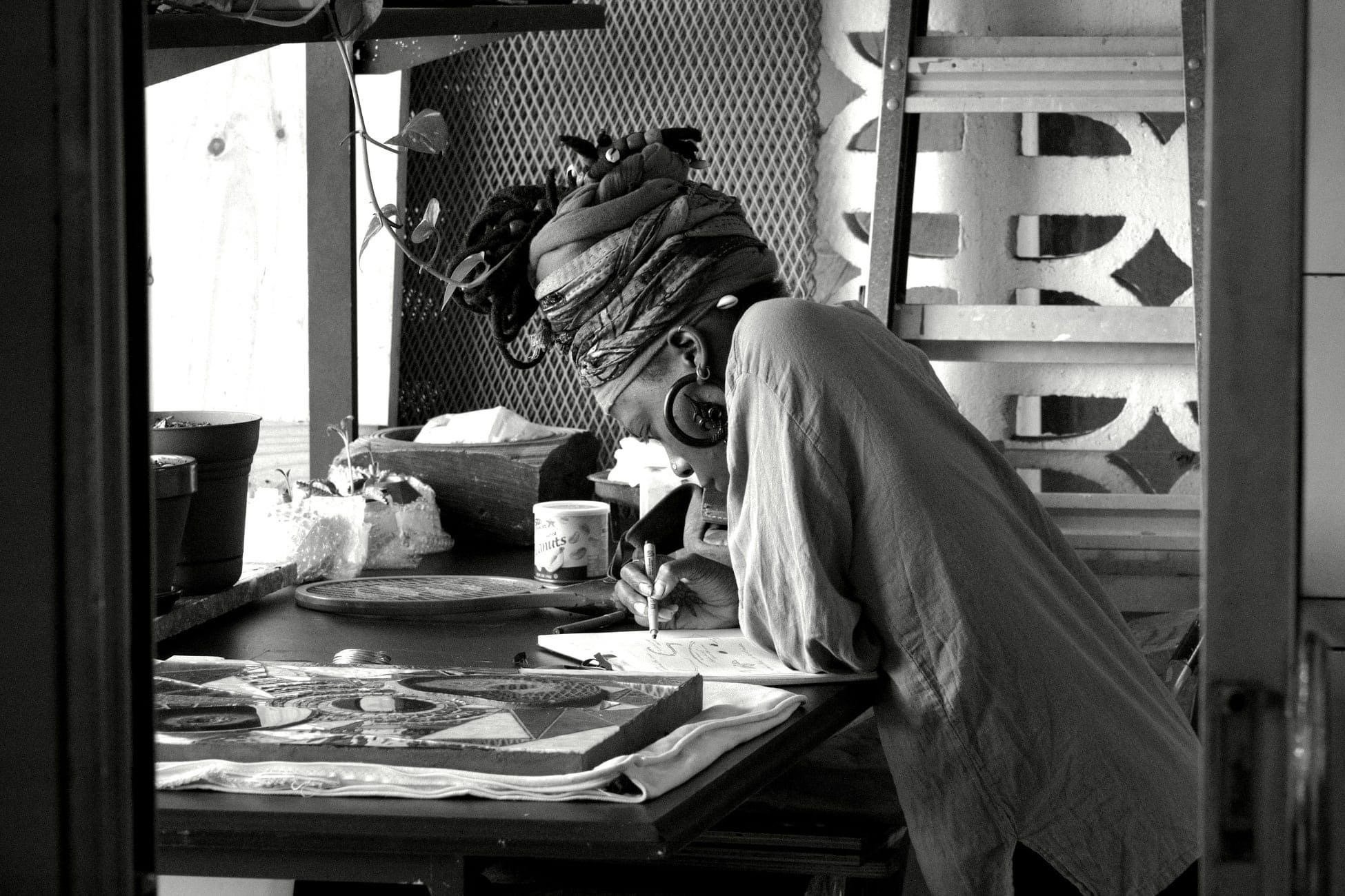 Durante su residencia artística, la artista desarrolló un cuerpo de obra inspirado en el detonante que la impulsó a visitar centros comunitarios, escuelas y diversos espacios de Puerto Rico para crear piezas específicamente vinculadas a esos contextos. Su investigación se centró en la belleza de la herencia cultural, la complejidad de la historia puertorriqueña y la generosidad natural del archipiélago, articulando un diálogo simbólico con sus “aguas continuamente cambiantes”. A partir de este proceso, surgieron instalaciones en papel que fueron creciendo de manera orgánica, tornándose cada vez más densas y complejas, como metáfora de un territorio que respira memoria y transformación. Fiel a una práctica atravesada por el futurismo, la comunidad, el misticismo y la narración desde la mirada de una mujer afroamericana, integró dibujo, reproducción gráfica, yeso y pintura para construir composiciones que entrelazan múltiples materialidades. La exposición, titulada Altruista, fue presentada en el espacio Espacio Híbrido en Santurce el 13 de mayo de 2022, marcando su primera exhibición individual.